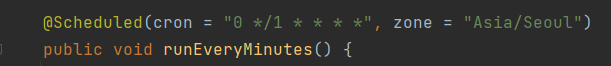 4. 최종적으로 Bean등록되어 스케쥴러를 필요한 위치에서 사용할 수 있다.(=> @Scheduled 어노테이션 사용)